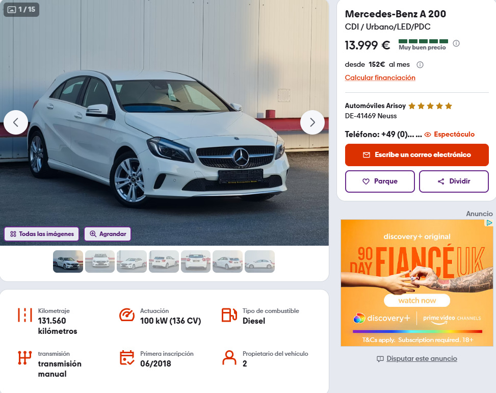 Mercedes es una de las marcas estrella en Alemania. Tanto el Clase C (C200) como el Clase A (A200) son modelos que se venden muchísimo allí, lo que genera una oferta muy amplia y competitiva.